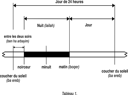 | JOUR | Agneau de la Pâque tué le soir (Ex. 12:8), au coucher du soleil (Deut. 16:2,5-6).
