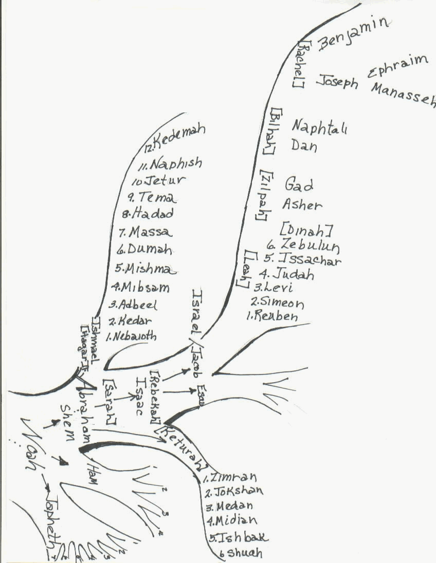 2) Abraham, Isaac et Jacob avec ses 12 fils