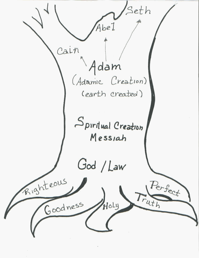 Tâches de Préparation : En utilisant le dessin 8 ½ x 11 de l’Arbre de Dieu (c’est-à-dire le tronc de l’arbre) comme modèle, agrandissez le dessin sur du carton ou du papier. Permettre aux enfants de peindre ou de colorier l’arbre. Quand l’arbre est sec, accrochez-le sur le mur. Avant la leçon, utilisez les cartes 3 x 5 et écrivez un mot par carte. La liste inclut : justice, bonté, sainteté, perfection, vérité, (Dieu) ; la Loi de Dieu, le Messie, la création spirituelle, (la création de la Terre), (la création Adamique), Adam, Caïn, Abel, Seth, Noah, Sem, Cham, Japhet, Abraham, Ismaël par Agar, (et les 12 princes d’Ismaël si vous voulez que les enfants soient familiers avec eux); Isaac par Sarah ; Ésaü par Rebecca, Jacob (Israël) par Rebecca ; Léa, Zilpa, Bilha, Rachel, Ruben, Siméon, Lévi, Juda, Issacar, Zabulon, Dina, Aser, Gad, Dan, Nephtali, Joseph, Ephraïm, Manassé, Benjamin, Ketura (et les 6 fils de Ketura si vous voulez que les enfants soient familiers avec eux).