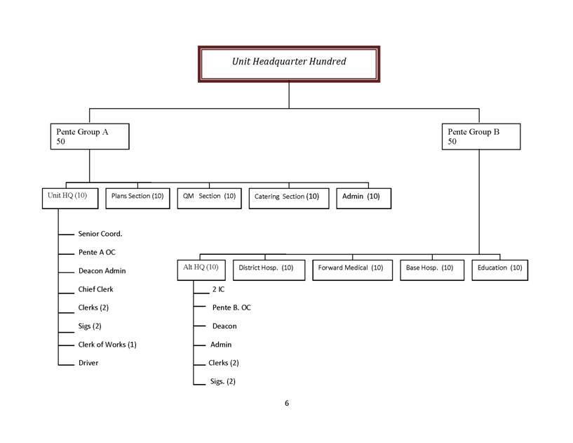 1.2.3.6. Chaque sous-unité d’église doit être divisée en deux sous-groupes de cinquante hommes sous des coordonnateurs auxiliaires.